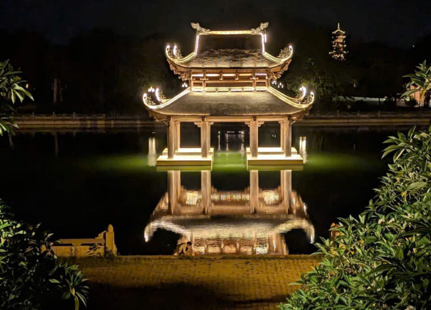 5:45 PM: The group takes an electric shuttle with the tour guide to Tam Quan Gate. From here, guests walk through the Arhat Corridor, praying and admiring the solemn beauty illuminated by the night lights.