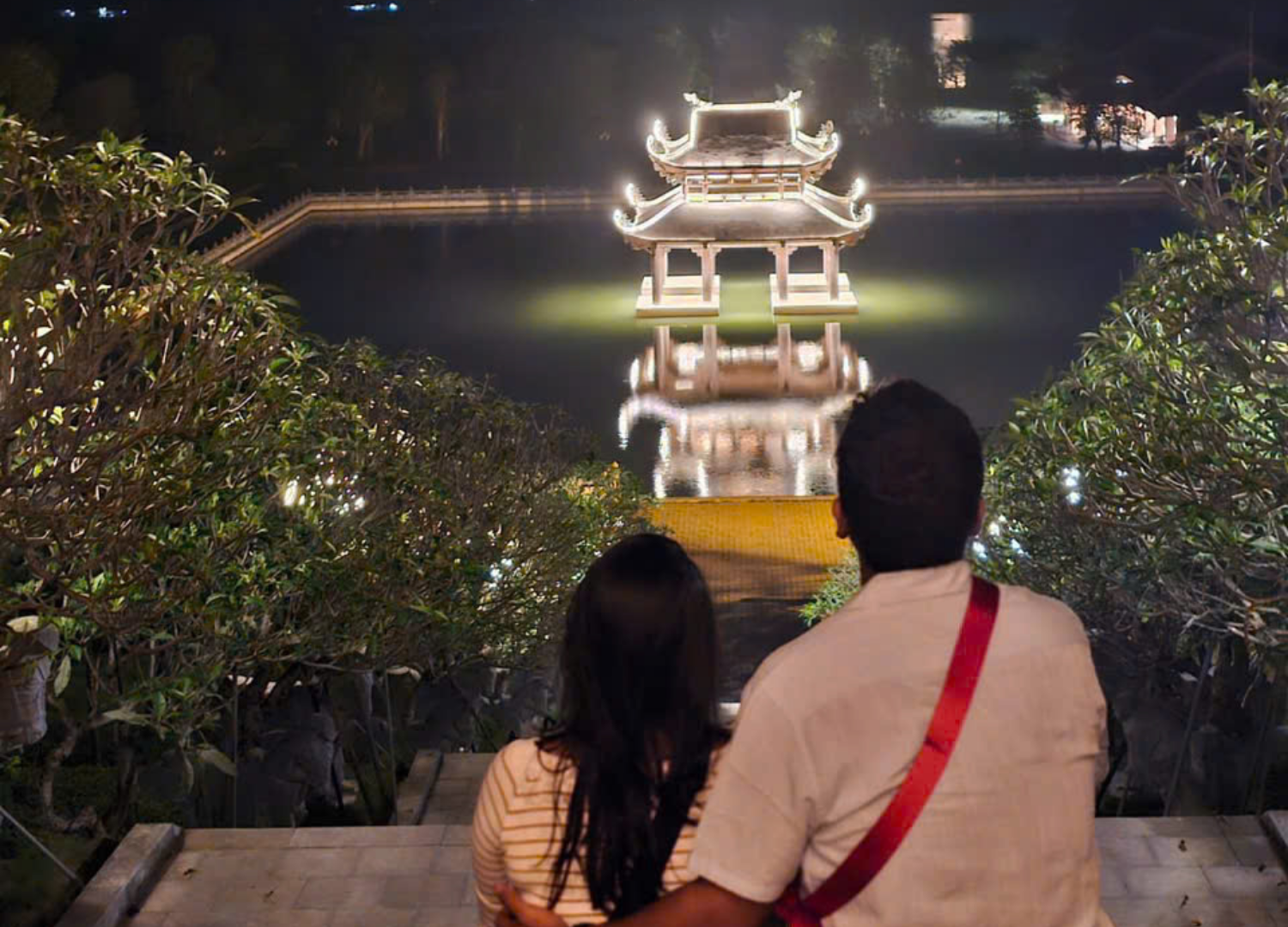 5:30 PM: The car picks up guests at Bái Đính Garden Resort to begin the journey of exploring the sacred atmosphere of Bái Đính Pagoda.