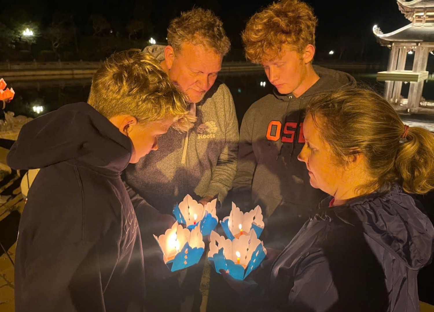 • After visiting the Wind Chime area, the group continues to the Release Lake, where guests will experience the ritual of floating lanterns – a meaningful spiritual activity to send wishes of peace and happiness for themselves and their loved ones.