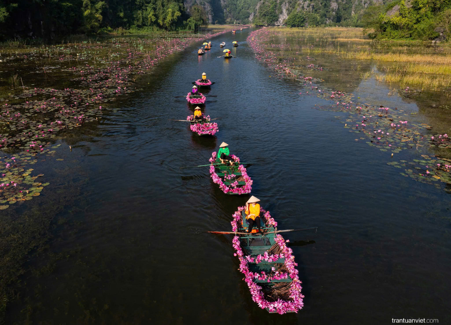 09:45 – Arrive at Tam Coc, known as “Halong Bay on land.” Enjoy a 1.5-hour boat trip along the Ngo Dong River, passing through picturesque rice paddies, limestone karsts, and stunning caves, including Hang Ca, Hang Hai, and Hang Ba.